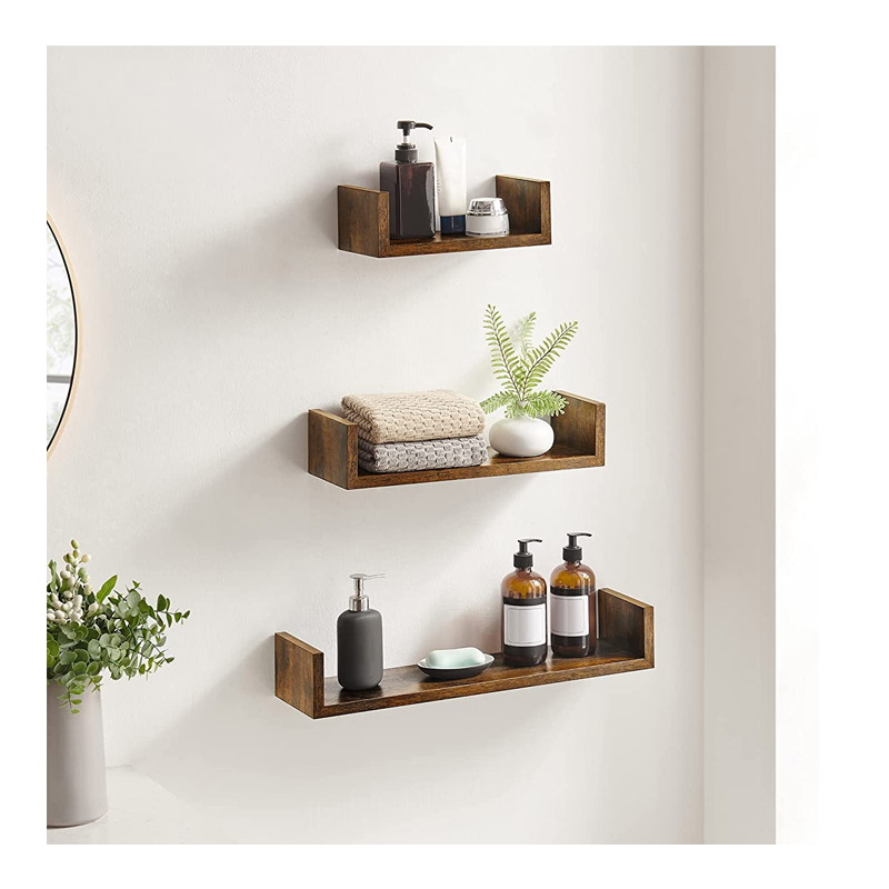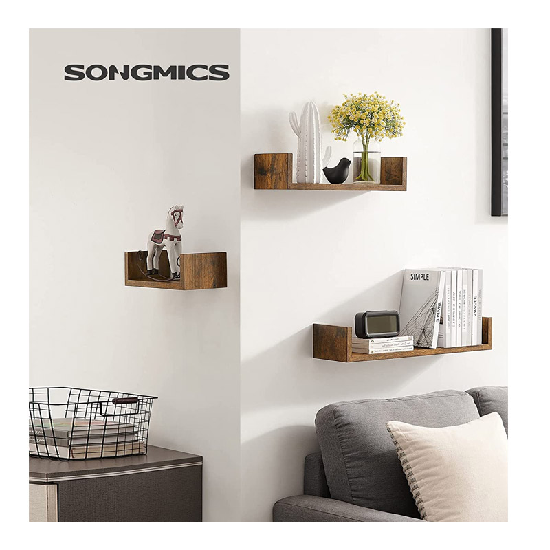 Τα επιτοίχια ράφια, από την εταιρία Songmics, διαθέτουν ανθεκτικό σκελετό από MDF ξύλο σε σχήμα U. Τα 3 ράφια έχουν διαφορετικές διαστάσεις, μικρό / μεσαίο / μεγάλο και κάθε ράφι μπορεί να φορτωθεί έως και 10 κιλά. Χάρη στον απλό σχεδιασμό τους ταιριάζουν σε κάθε δωμάτιο.