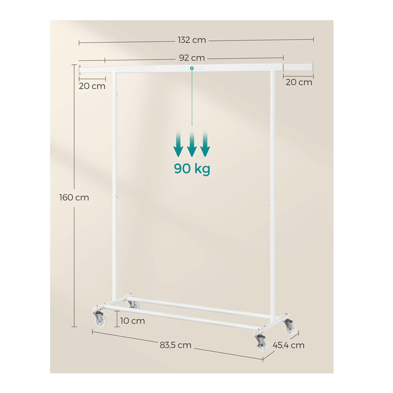 Μεταλλική Κρεμάστρα Ρούχων Δαπέδου Βαρέως Τύπου 92 / 132 x 45.4 x 160 cm με Ρόδες Χρώματος Λευκό Songmics HSR013W01