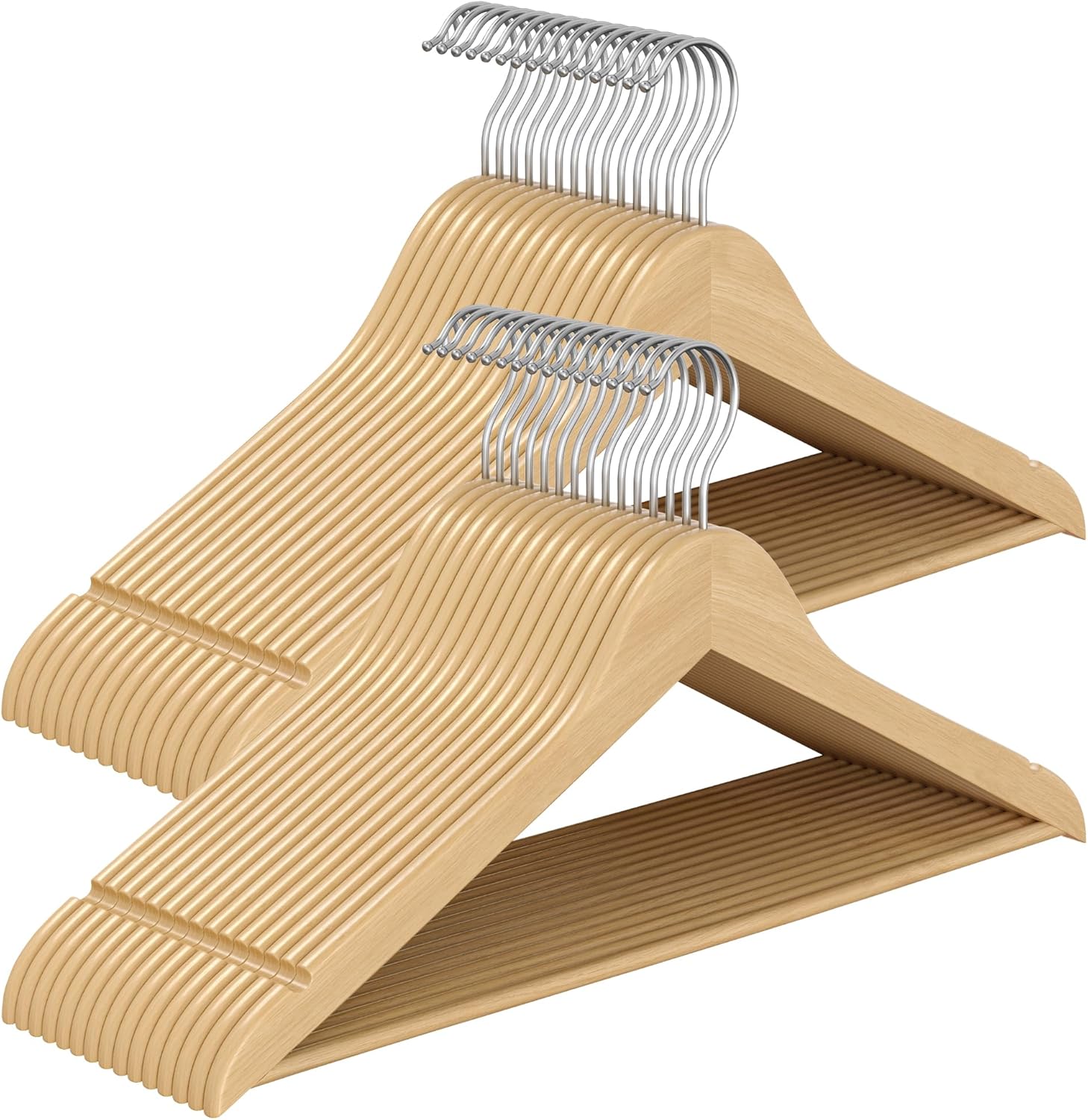 Ανθεκτικότητα & Σταθερότητα: Κατασκευασμένες από συμπαγές ξύλο σημύδας και εξαιρετικής ποιότητας χάλυβα, αυτές οι κρεμάστρες ρούχων είναι σχεδιασμένες για να στηρίζουν ενδύματα κάθε εποχής. Με αντοχή βάρους 5 κιλά η καθεμία, είναι ιδανικές για βαριές χειμωνιάτικες ζακέτες και παλτό.