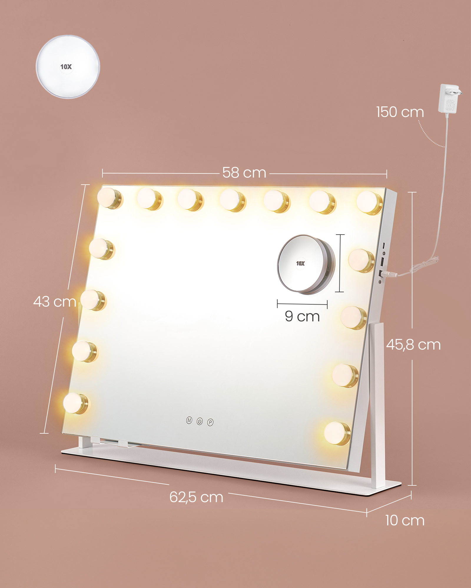 • 1 x καθρέφτης μακιγιάζ με φωτισμό.