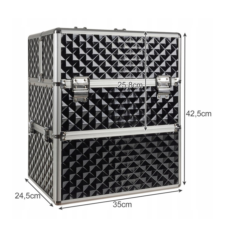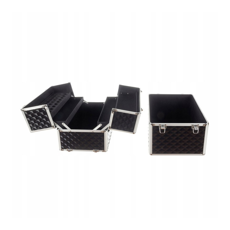 Το βαλιτσάκι, από την εταιρία Soulima, είναι ιδανικό για την οργάνωση καλλυντικών. Διαθέτει βολική λαβή μεταφοράς, ράφια για εύκολη οργάνωση και ένας από τους δίσκους είναι εξοπλισμένος με οργανωτή για βερνίκια νυχιών. Η βαλίτσα κλειδώνει και στις δύο πλευρές με κλειδί. Επιπλέον, το κάτω μέρος της θήκης είναι αποσπώμενο, οπότε μπορείτε να πάρετε μόνο μια μικρή βαλίτσα μαζί σας.