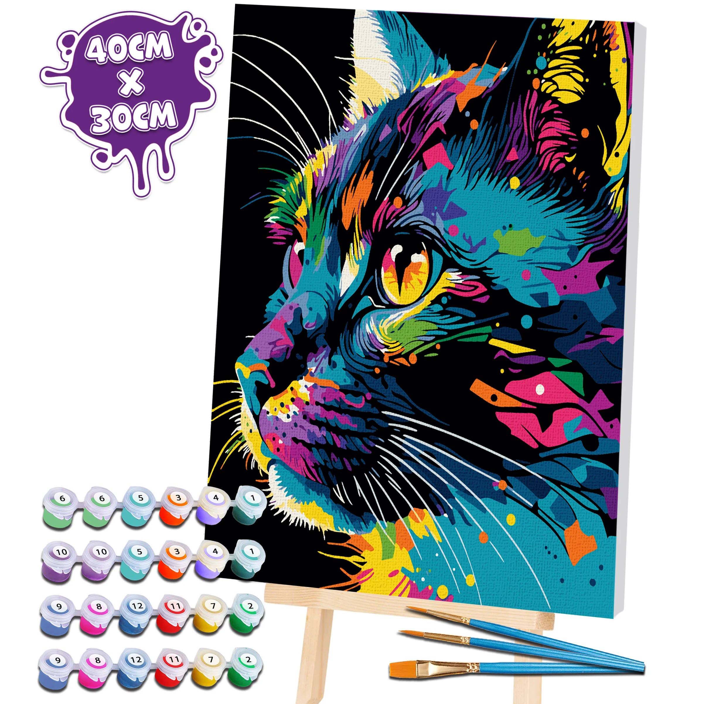 Splat Planet Σετ Ζωγραφικής με Αριθμούς “Bright Cat” σε Καμβά με Τελάρο 30x40cm