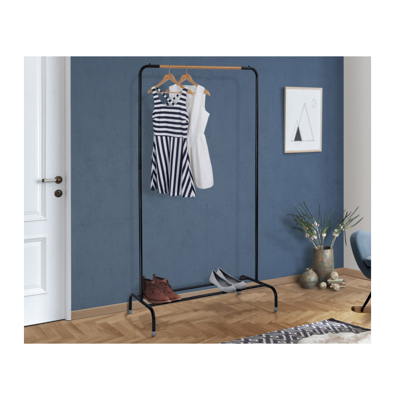 Η κρεμάστρα ρούχων, από την εταιρία SPM, διαθέτει μεταλλικούς σωλήνες υψηλής ποιότητας και ξύλινο μέρος στην κορυφή, εξασφαλίζοντας ανώτερη αντοχή. Είναι ιδανική για παλτό, φορέματα, πουκάμισα και διάφορα ρούχα τα οποία θέλετε να έχετε πάντα τακτοποιημένα. Είναι εξοπλισμένη με επιπρόσθετο ράφι στο κάτω μέρος για παπούτσια και 4 αντιολισθητικά μαξιλαράκια για μέγιστη σταθερότητα.
