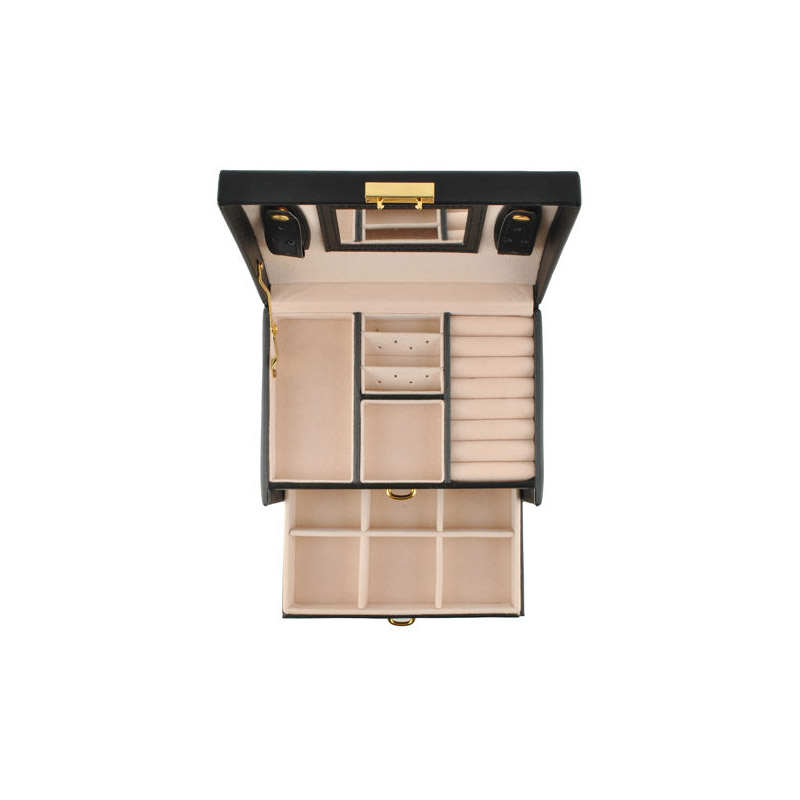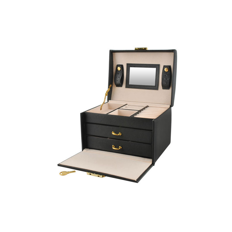 Το εσωτερικό της είναι γεμισμένο με μαλακό υλικό που προστατεύει τα κοσμήματα από τις γρατζουνιές. Κλειδώνει με κλειδί, παρέχοντας έτσι πλήρη ιδιωτικότητα. Ο εσωτερικός καθρέπτης είναι ιδανικός για περιποίηση make-up, ενώ η πρακτική λαβή στο πάνω μέρος την καθιστά εύκολη στη μεταφορά.