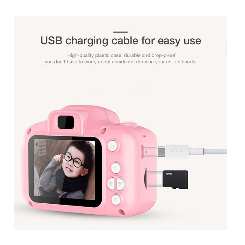 Είναι κατασκευασμένη από υψηλής ποιότητας, μη τοξική, μαλακή σιλικόνη, απόλυτα ασφαλή για τα παιδιά, χάρη στην οποία η φωτογραφική μηχανή είναι εξαιρετικά ανθεκτική στους κραδασμούς και τις πτώσεις. Διαθέτει οθόνη 2 ” LCD με καθαρό και ρεαλιστικό χρώμα για φωτογραφίες και βίντεο, καθώς και προεγκατεστημένew κορνίζες για να μπορεί το παιδί να επιλέξει. Είναι πολύ εύκολη στη χρήση της και αποτελεί ιδανικό δώρο για κάθε παιδί!