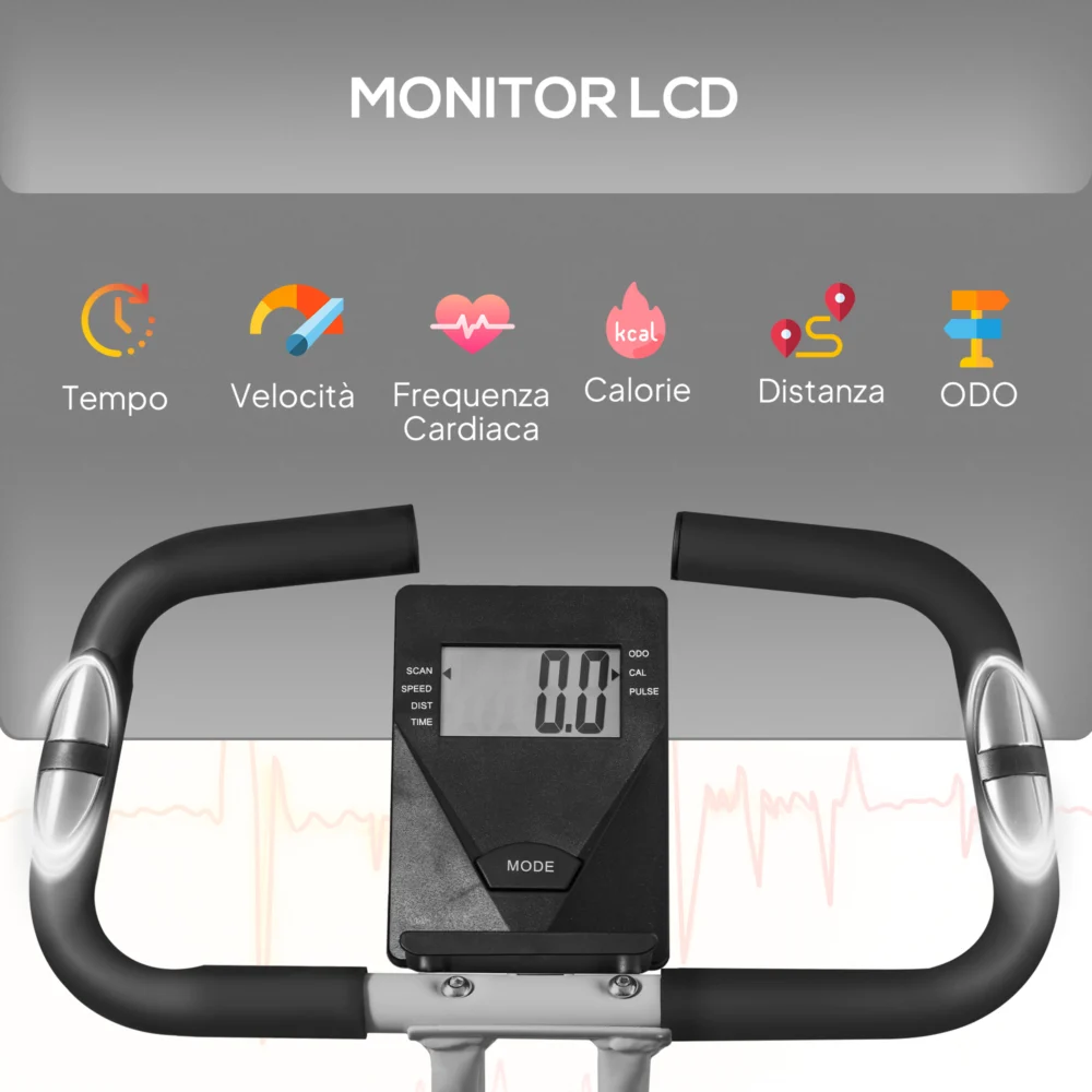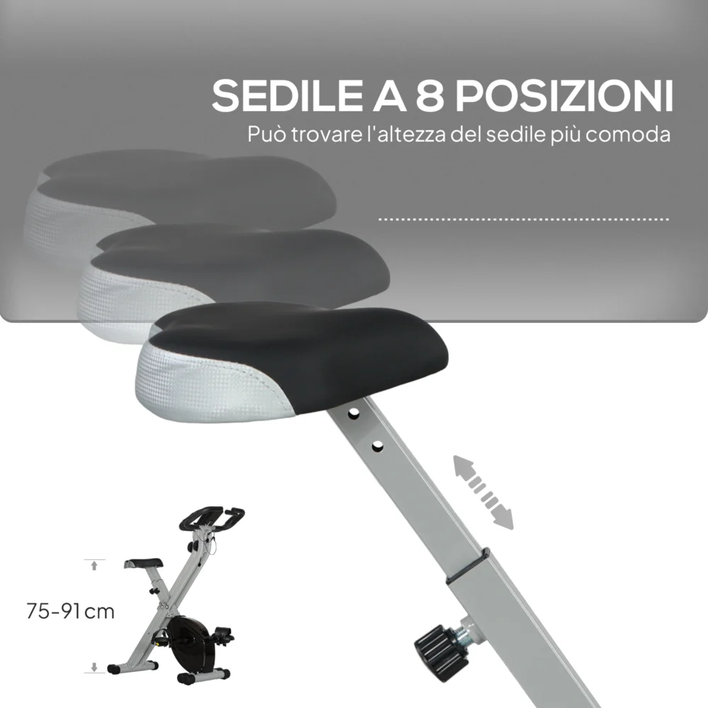 Εξοπλισμένο με ρυθμιζόμενη μαγνητική αντίσταση 8 επιπέδων για αθόρυβη ποδηλασία και αναδιπλούμενο σχεδιασμό για εύκολη αποθήκευση, το ποδήλατό μας σας επιτρέπει να ρυθμίσετε το κάθισμα σε 8 επίπεδα για να ταιριάζει στο ύψος σας. Η οθόνη LCD παρακολουθεί την προπόνησή σας και η βάση για τηλέφωνο ή tablet σας επιτρέπει να έχετε τις συσκευές σας κοντά σας. Ένα τέλειο ποδήλατο για τους λάτρεις της εσωτερικής ποδηλασίας.