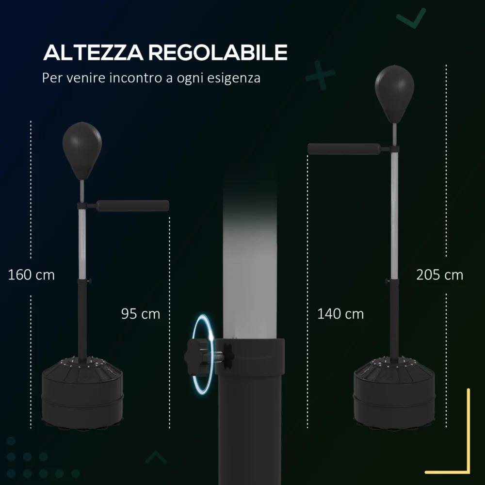 SPORTNOW Μπάλα διάτρησης με περιστρεφόμενη μπάρα για ενήλικες και ρυθμιζόμενο ύψος 1,6-2m, μαύρο A91-308V00BK