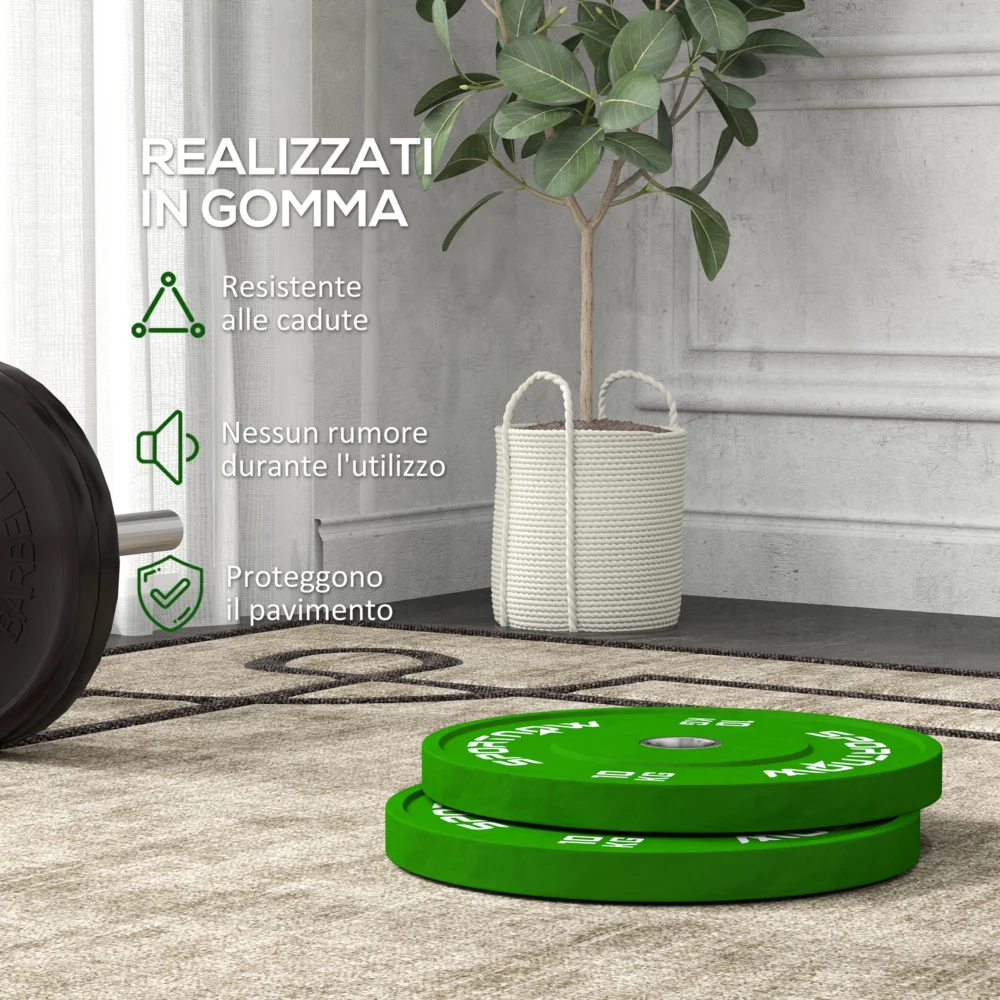 SPORTNOW Σετ 2 Δίσκοι Βάρους 10kg από Καουτσούκ με Τρύπα 2″/5 cm για Μπάρες και Μονόζυγα, Πράσινο A91-376V00GN