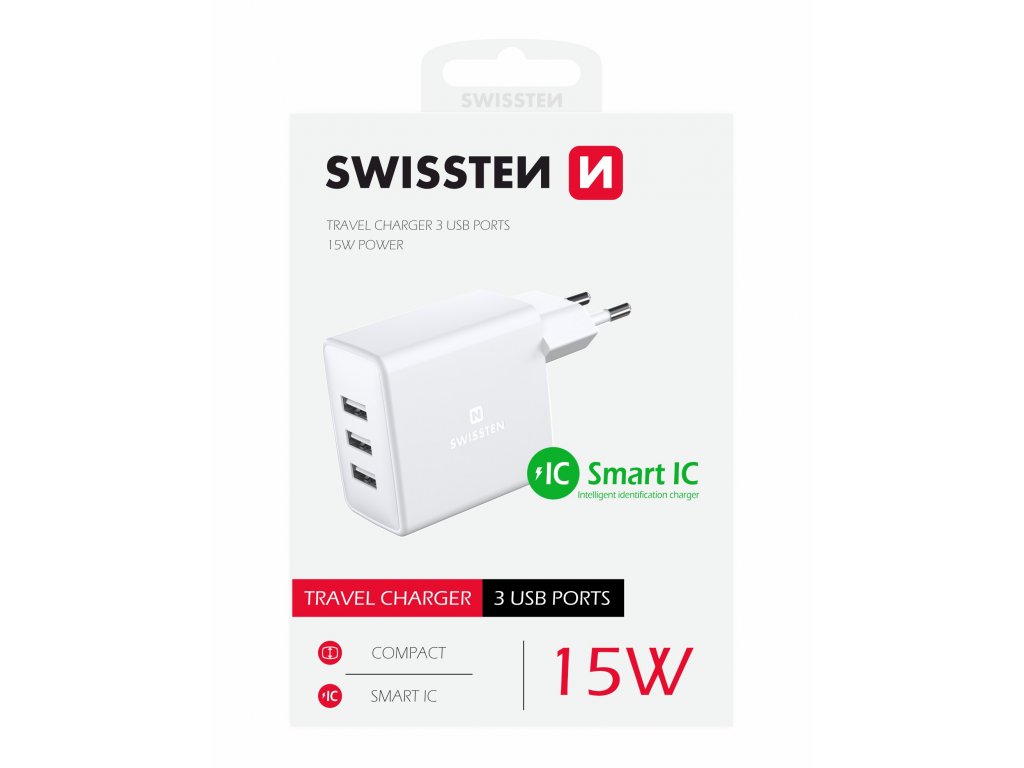 SWISSTEN Φορτιστής Ταξιδιού με 3 Θύρες USB-A, 3Α, 15W, Λευκός 8595217476615