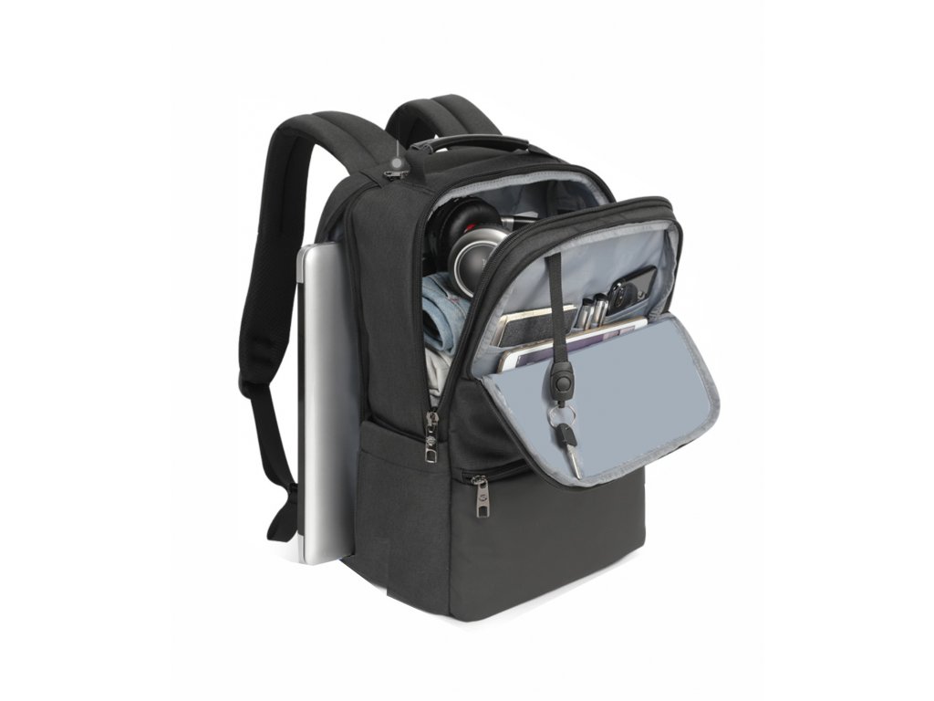 Στο εσωτερικό του σακιδίου θα βρείτε έναν ειδικό χώρο για το laptop σας, το κινητό, τα ακουστικά, το πορτοφόλι, τις πιστωτικές κάρτες, τα γυαλιά, το μπουκάλι νερού και πολλά άλλα αντικείμενα που μπορείτε να διατηρήσετε οργανωμένα. Συνολικά, διαθέτει έως και 8 ξεχωριστά διαμερίσματα. Είναι εντυπωσιακό πόσα μπορείτε να τοποθετήσετε σε όγκο 19 λίτρων αν οργανώσετε καλά τα αντικείμενά σας. Πολύτιμα αντικείμενα μπορούν να αποθηκευτούν στην ειδική θήκη ασφαλείας στο πίσω μέρος, ενώ μια κλειδαριά ασφαλείας για το κλείδωμα των φερμουάρ κάνει το σακίδιο απροσπέλαστο. Για υψηλή άνεση, το σακίδιο είναι εξοπλισμένο με επενδυμένη πλάτη και ρυθμιζόμενους ιμάντες. Το κάτω μέρος είναι καλυμμένο με προεξέχοντες ιμάντες για αποφυγή λερώματος.