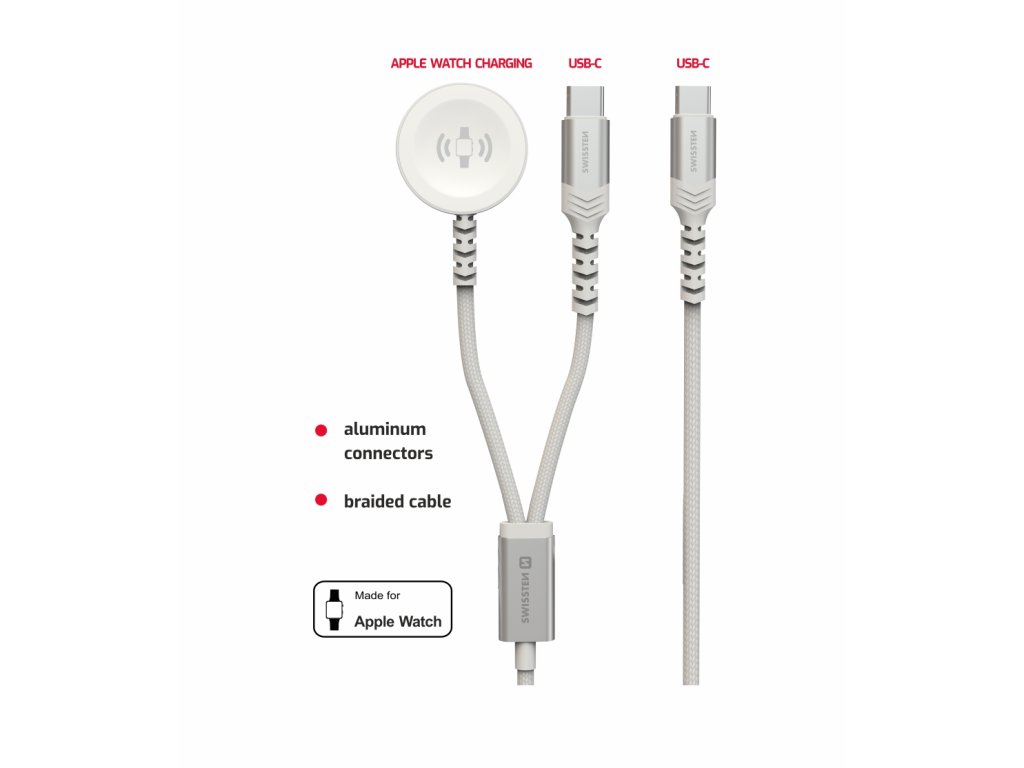 SWISSTEN Μαγνητικό Πλεκτό Μεταλλικό Καλώδιο για Apple Watch, και USB-C, USB-C, 1,2 μ, Λευκό 8595217487017