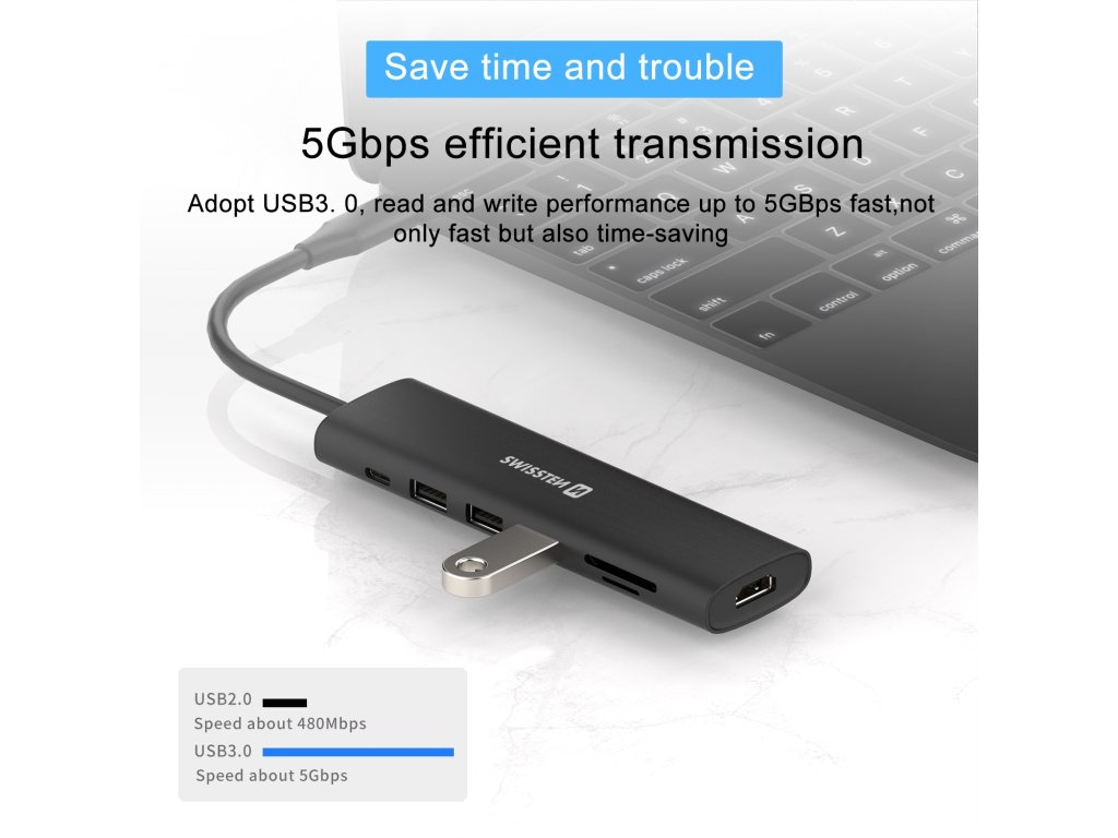 Το Swissten USB Hub υποστηρίζει μετάδοση εικόνας ποιότητας 4K@30Hz, που εξασφαλίζει ομαλή και υψηλής ποιότητας μετάδοση εικόνας και ήχου μέσω της θύρας HDMI.