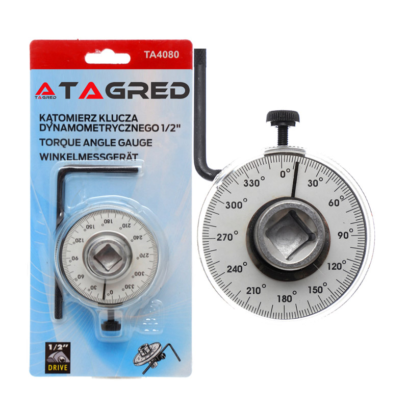 Ο μετρητής γωνιακής ροπής, από την εταιρία TAGRED, χρησιμοποιείται για να σφίγγει τις κεφαλές με καθορισμένη γωνία (τελική σύσφιξη μπουλονιών και παξιμαδιών με καθορισμένη τάση με μέτρηση της γωνίας περιστροφής). Είναι συμβατός με καστάνιες και μπουλονόκλειδα 1/2 ”και έχει κλίμακα από 0 – 360°.