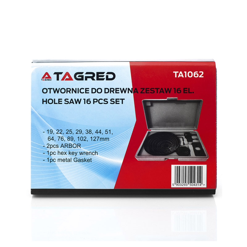 Με το σετ ειδικών εργαλείων, από την εταιρία TAGRED, μπορείτε με ευκολία να ανοίξετε τρύπες σε ξύλα, PVC, γυψοσανίδες, πλαστικό, μελαμίνες και κόντρα πλακέ. Κατασκευασμένα από υλικά υψηλής ποιότητας, εγγυώνται ευκολία κατά την εργασία και μεγάλη διάρκεια ζωής.