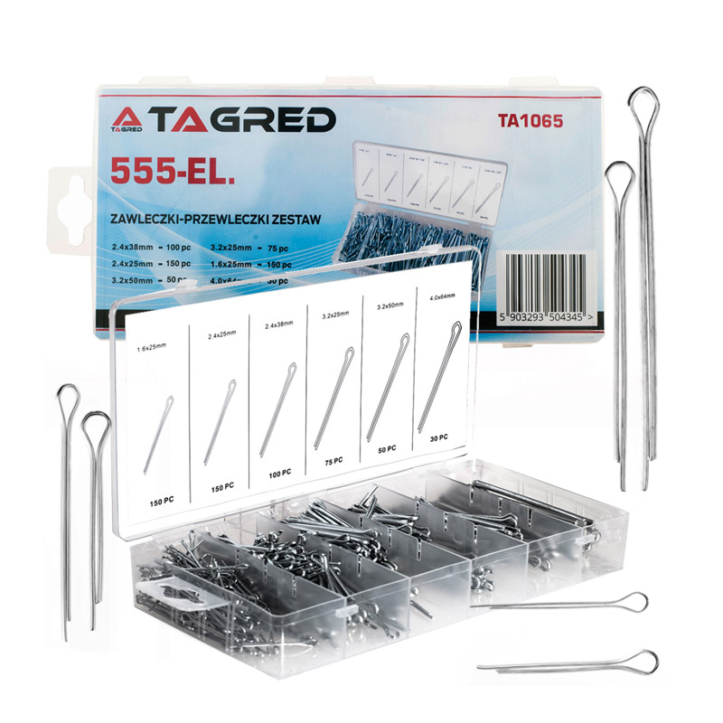 Το σετ, από την εταιρία TAGRED, αποτελείται από 555 κοπίλιες από ατσάλι σε πλαστική κασετίνα. Είναι ιδανικές για τους λάτρεις του DIY και των μηχανικών και χρησιμοποιούνται σε διάφορα εργαστήρια.