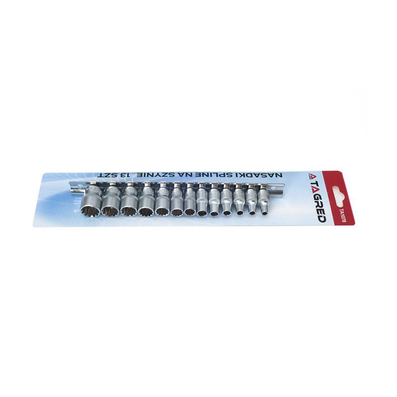 Tο σετ από την εταιρεία TAGRED, αποτελείται από 13 spline καρυδάκια διαφορετικών μεγεθών και μία ράγα αποθήκευσης. Είναι ένα απαραίτητο εργαλείο, για το συνεργείο, το εργαστήριο ή το γκαράζ, είναι εξαιρετικά ανθεκτικό και για μακροχρόνια χρήση. Όλα τα μέρη του σετ είναι κατασκευασμένα από υψηλής ποιότητας ατσάλι Cr-V, ενώ τα μεγέθη είναι αποτυπωμένα για εύκολη αναγνώριση.