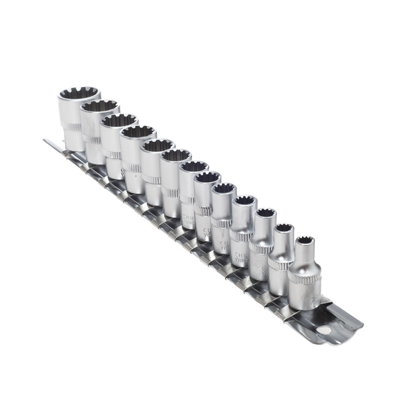 - 13 spline καρυδάκια 1/4” (μεγέθη από 4 έως 14 mm)
