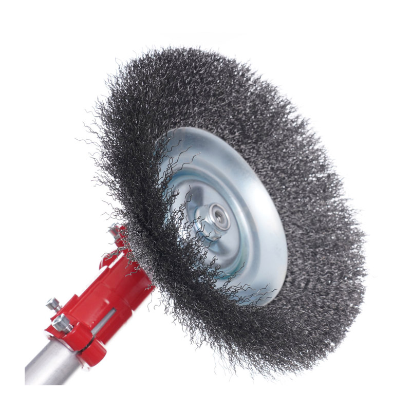 Η βούρτσα μπορεί να χρησιμοποιηθεί απευθείας σε δρέπανο ή συσκευές κοπής, τόσο καύσης όσο και ηλεκτρικές. Ιδανική για τρίψιμο λιθόστρωτων επιφανειών, στην αφαίρεση των ζιζανίων ανάμεσα στις ρωγμές των πεζοδρομίων, σε πλακόστρωτες επιφάνειες, καθώς και για τον καθαρισμό όλων των μεταλλικών επιφανειών.