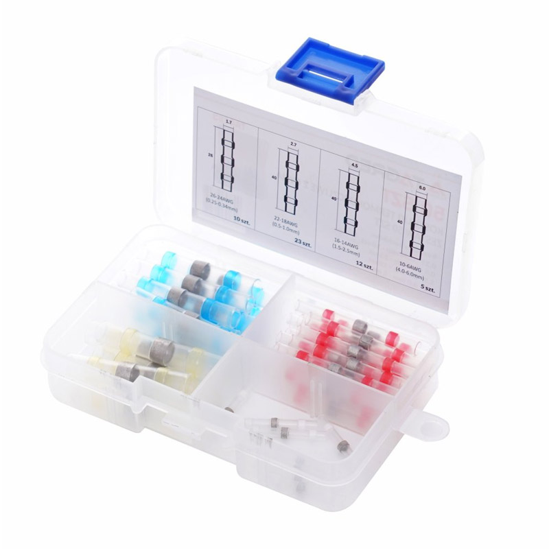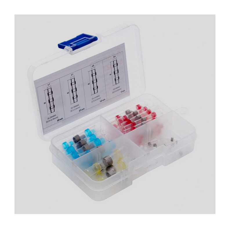 Το σετ, από την εταιρία TAGRED, αποτελείται από θερμοσυστελλόμενα μονωτικά καλωδίων με κασσίτερο, διαφορετικού χρώματος. Χάρη στο κασσίτερο, η σύνδεση των καλωδίων είναι μόνιμη, εξασφαλίζοντας τέλεια επαφή των καλωδίων Συνοδεύονται από κασετίνα αποθήκευσης και μεταφοράς.