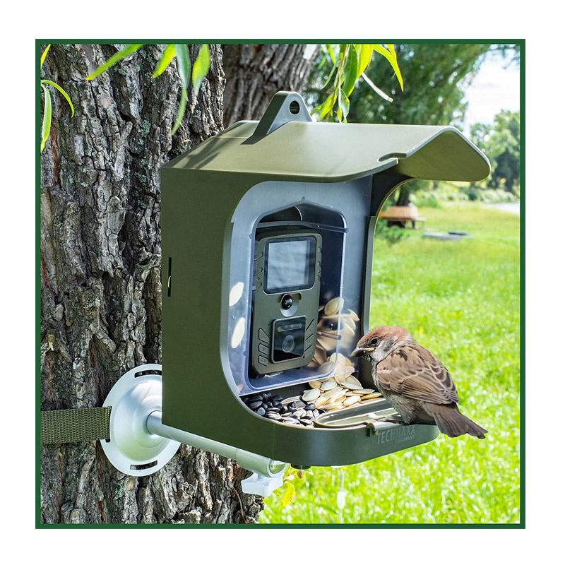 Η κάμερα, από την εταιρία Technaxx, είναι ιδανική για καταγραφή και παρατήρηση πουλιών και μικρών ζώων. Διαθέτει αφαιρούμενο δοχείο τροφής για πτηνά περίπου 150 g, αφαιρούμενη λεκάνη νερού και γάντζο για ζυμάρι.