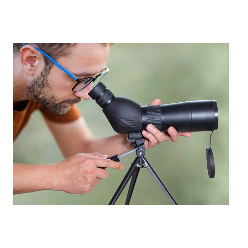 Το τηλεσκόπιο, από την εταιρία Technaxx, διαθέτει εύρος συνεχούς ζουμ από 20 έως 60x και διάφραγμα 60 mm για φωτεινές εικόνες ακόμα και στο λυκόφως. Εξοπλισμένο με καλύμματα σκόνης για τον μπροστινό φακό και τον σωλήνα προσοφθάλμιου φακού και τρίποδο με σύνδεση M6. Είναι κατάλληλο και για άτομα που φορούν γυαλιά.