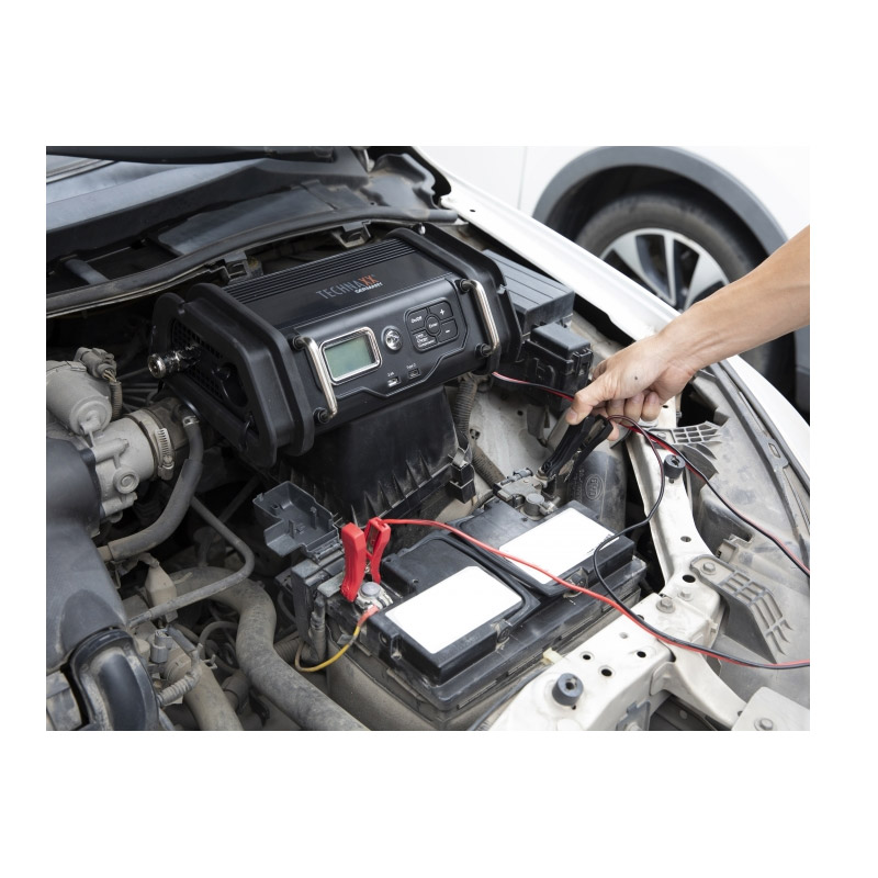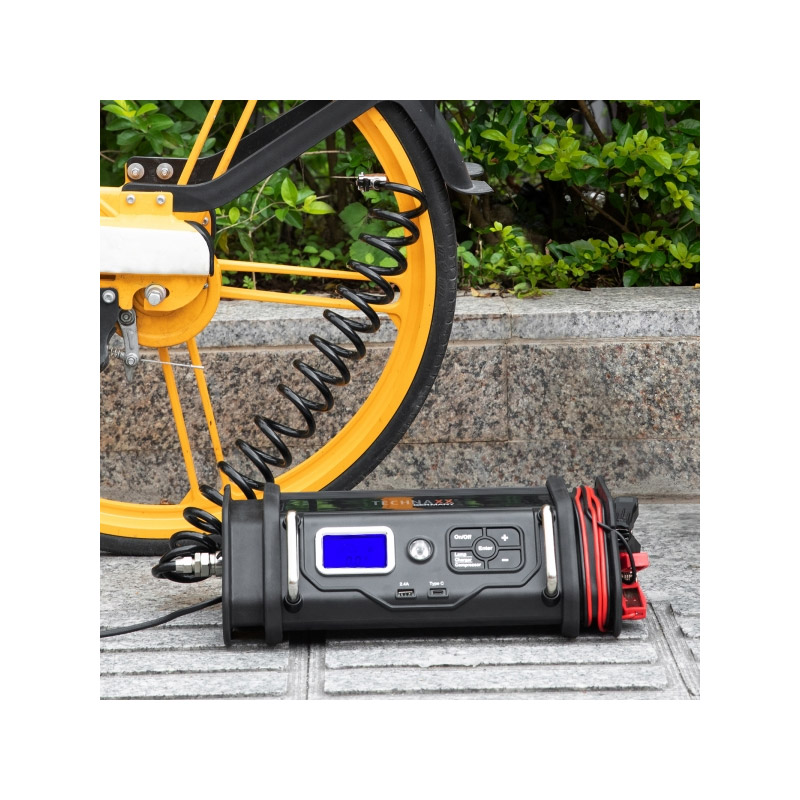 Ο φορτιστής μπαταρίας αυτοκινήτου, από την εταιρία Technaxx, επιτρέπει τη φόρτιση μπαταριών 6/12V. Είναι εξοπλισμένος με συμπιεστή αέρα έως 8 BAR, φακό LED και οθόνη LC με ενδείξεις για φόρτιση ρεύματος/τύπο μπαταρίας, τάσης και πίεσης. Διαθέτει προστασία βραχυκυκλώματος και αντίστροφης πολικότητας, καθώς και προστασία υπερθέρμανσης και υπερφόρτισης.