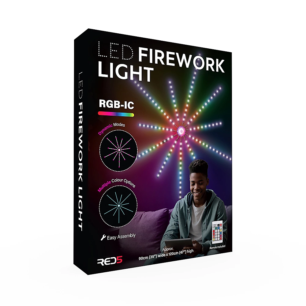 Φώτισε τον χώρο σου με στυλ και εντυπωσιακό φωτισμό χάρη στο LED Burst Light Set! Με 8 πολύχρωμα εφέ φωτισμού τύπου rainbow και τηλεχειριστήριο για εύκολο έλεγχο, αυτό το φωτιστικό είναι ιδανικό για κάθε δωμάτιο που χρειάζεται μια παιχνιδιάρικη, φωτεινή πινελιά.