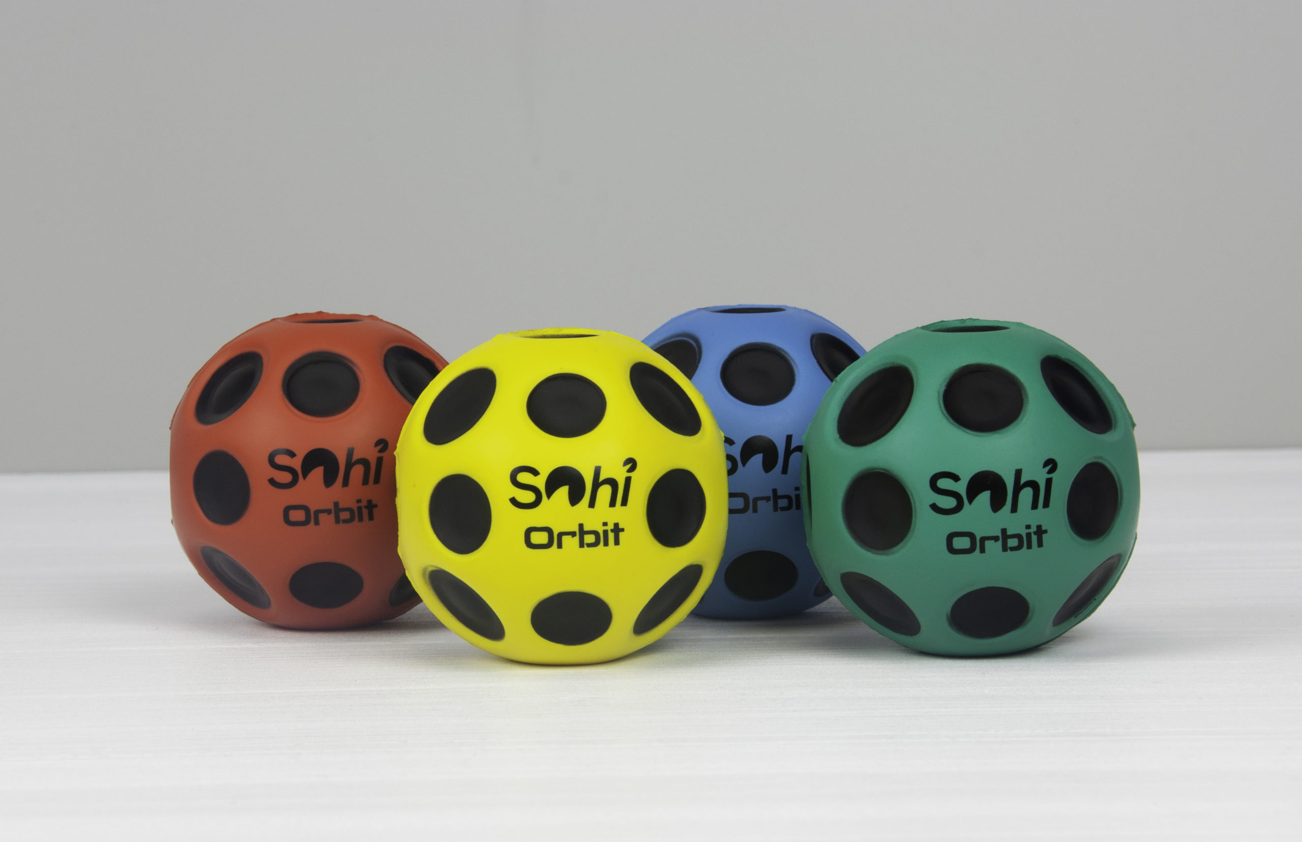 - Αναπηδά ψηλότερα από μια συμβατική λαστιχένια μπάλα, είναι καλυμμένο με λακκάκια, που του δίνουν επιπλέον αναπήδηση και το κάνουν να μοιάζει με την επιφάνεια του φεγγαριού… που είναι αρκετά βολικό για μια μπάλα που ονομάζεται Orbit!