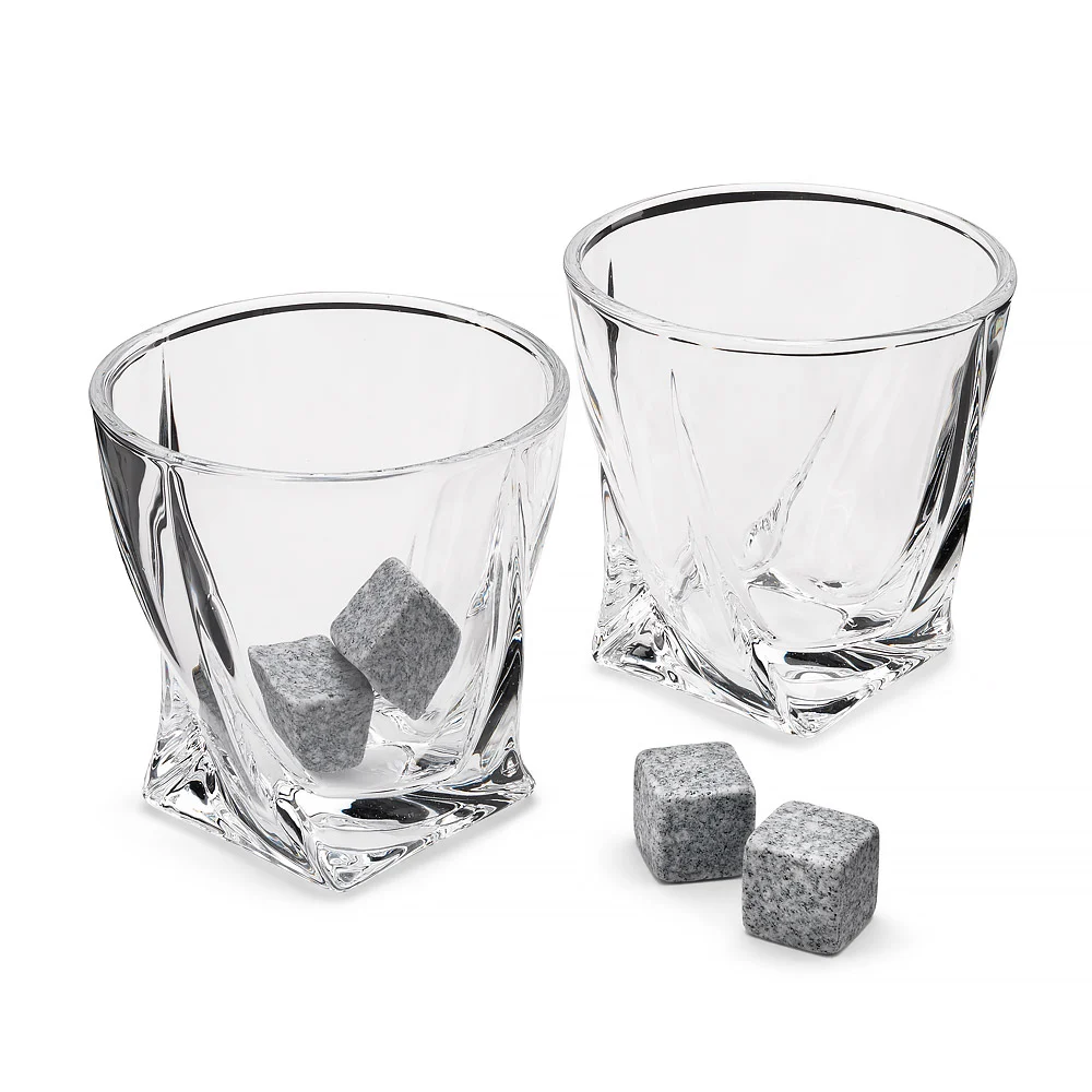 InGenious Twisted Glasses With Stone – Σετ 2 ποτήρια και κομψή θήκη με 4 κύβους πάγου από πέτρα