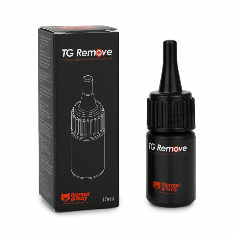 Το TG Remove αναπτύχθηκε από την Thermal Grizzly με επίκεντρο την αφαίρεση της θερμικής πάστας και των υπολειμμάτων με τον πιο αποτελεσματικό τρόπο. Το καθαριστικό έχει ιδιότητες βαθύ καθαρισμού που βοηθούν στην απομάκρυνση των υπολειμμάτων συμβατικής θερμικής πάστας αλλά και υγρών θερμικών ενώσεων με βάση το μέταλλο, όπως η Conductonaut.