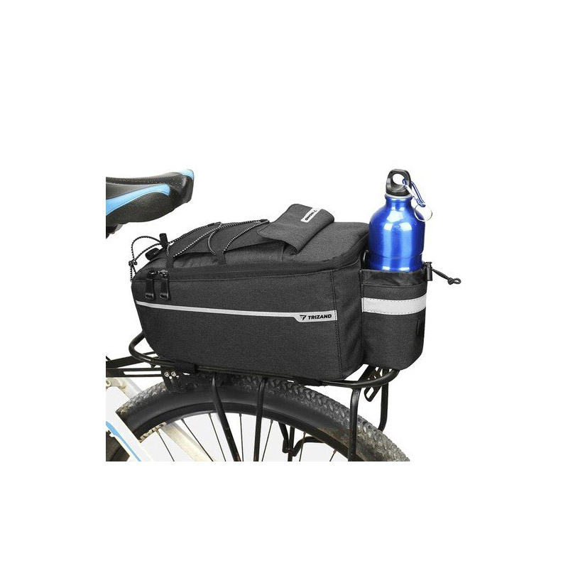 Η ισοθερμική τσάντα ποδηλάτου, από την εταιρία Trizand, είναι ιδανική για μια βόλτα με το ποδήλατο διατηρώντας τη θερμοκρασία του φαγητού και των ποτών σας. Είναι κατασκευασμένη από πολυεστέρα με εσωτερικό φύλλο αλουμινίου και διαθέτει θήκη αποθήκευσης για τηλέφωνο, κλειδιά και πολλά άλλα, καθώς και θήκη για μπουκάλι 1.5 Lt. Τα ελαστικά κορδόνια στο επάνω μέρος βοηθούν στην ασφάλεια του περιεχομένου.