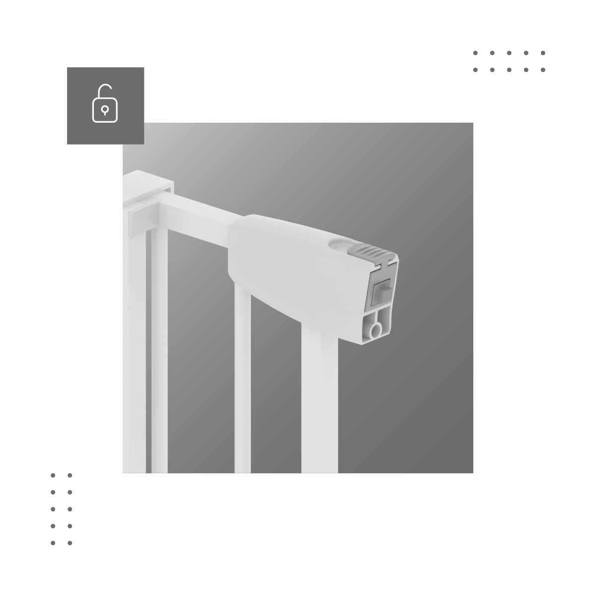 Ένα κουμπί στην κορυφή του κλειδώματος αποτρέπει αποτελεσματικά το μωρό από το να ανοίξει το κιγκλίδωμα. Το αυτόματο σύστημα κλειδώματος αποκλείει τη δυνατότητα ανοίγματος της πύλης ασφαλείας, ακόμα και αν το άτομο που πέρασε ξέχασε να την κλείσει με το χέρι.