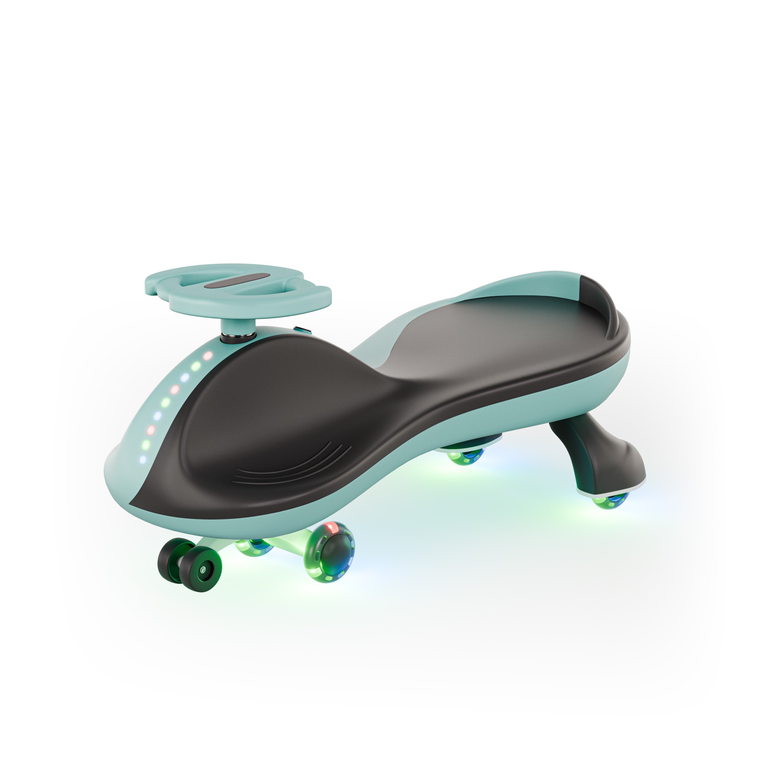 Οι ρόδες από μαλακό καουτσούκ παρέχουν αθόρυβη οδήγηση και εξαιρετική πρόσφυση σε διάφορες επιφάνειες, τόσο εσωτερικά όσο και εξωτερικά. Επιπλέον, τα εντυπωσιακά φωτάκια που βρίσκονται στους εμπρός και πίσω τροχούς καθιστούν κάθε διαδρομή μαγευτική.