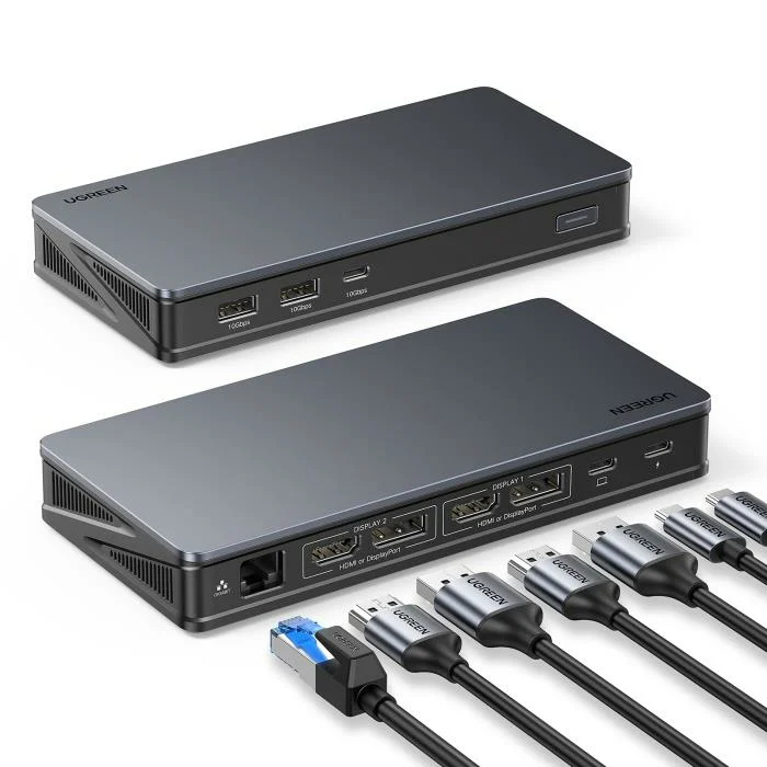 Το UGREEN CM615 90912 ανανεώνει τη συνδεσιμότητα προσφέροντας ένα εκτενές φάσμα θυρών για να ενισχύσει την παραγωγικότητά σου και την εμπειρία πολυμέσων. Με την τεχνολογία DisplayLink, αυτός ο σταθμός επεκτείνει απροβλημάτιστα δύο οθόνες , κάτι που τον καθιστά ιδανικό τόσο για συστήματα Windows όσο και MacOS.