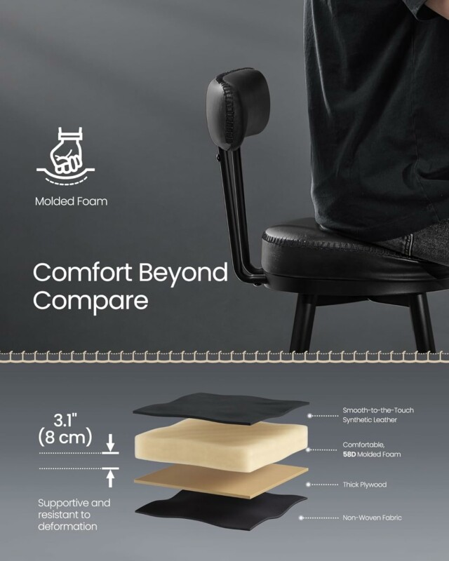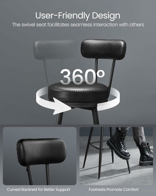 Περιστρεφόμενο κάθισμα 360° για ελεύθερη επικοινωνία: Οι καρέκλες μπαρ περιστρέφονται πλήρως, επιτρέποντάς σας να συμμετέχετε εύκολα σε κάθε συζήτηση. Ιδανικές για την κουζίνα, το home bar ή τον χώρο ψυχαγωγίας σας.