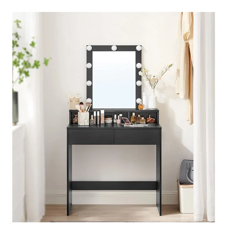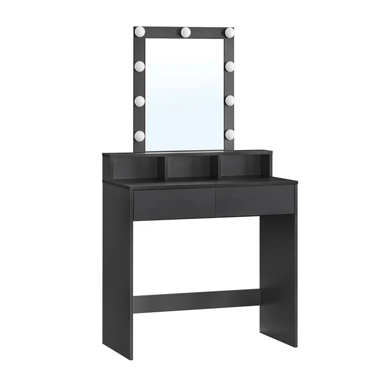 Ξύλινο Μπουντουάρ με Καθρέπτη και Φωτισμό 80 x 40 x 145 cm Χρώματος Μαύρο VASAGLE RDT114T16