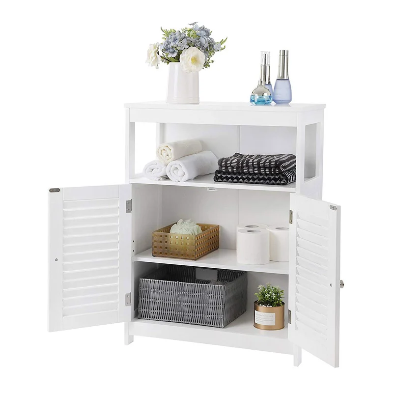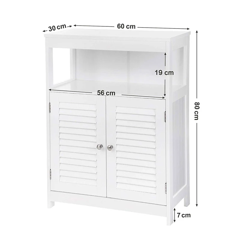 Το ντουλάπι, από την εταιρεία VASAGLE, είναι κατασκευασμένο από υψηλής ποιότητας MDF ξύλο καλυμμένο με βερνίκι, ανθεκτικό στην υγρασία και με εύκολο καθαρισμό. Διαθέτει 2 πόρτες, μεγάλο εσωτερικό χώρο αποθήκευσης με ρυθμιζόμενο ράφι σε 3 σημεία και έναν επιπλέον χώρο αποθήκευσης στο πάνω μέρος. Ιδανικό για την αποθήκευση πετσετών, προϊόντα καθαρισμού και διάφορα αξεσουάρ μπάνιου.