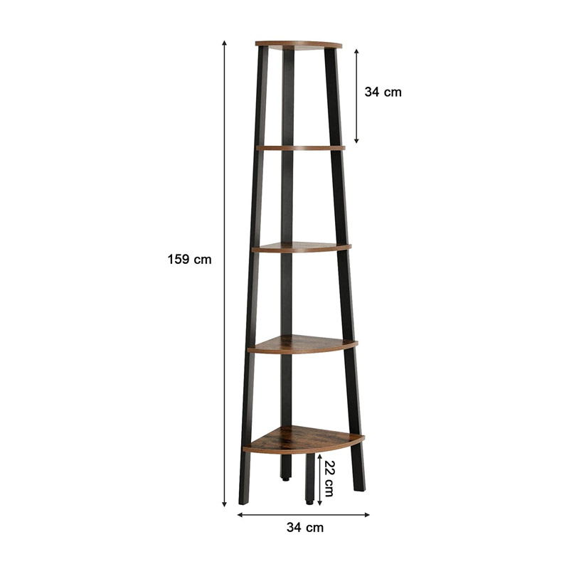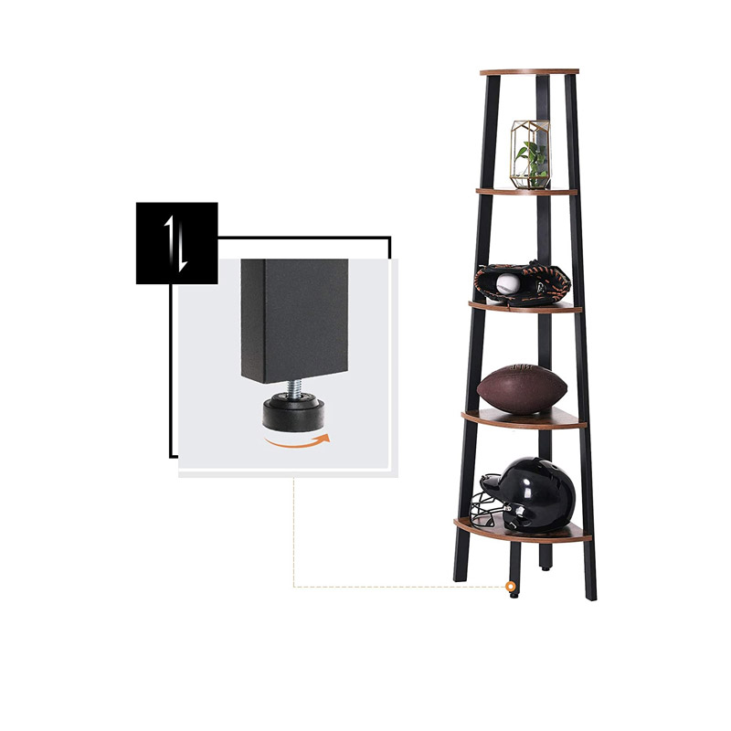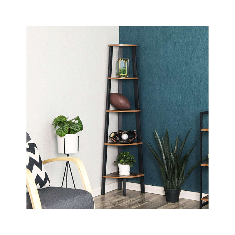 Η γωνιακή ραφιέρα, από την εταιρία VASAGLE, διαθέτει μεταλλική στιβαρή κατασκευή με βιομηχανικό σχεδιασμό, κατάλληλη για το σαλόνι, το υπνοδωμάτιο και το γραφείο. Διαθέτει 5 ράφια από ανθεκτικό ξύλο και 4 πόδια με προστατευτικά καλύμματα στο κάτω μέρος, τα 2 εκ των οποίων είναι ρυθμιζόμενα για να εξασφαλίσουν σταθερότητα και σε ανώμαλες επιφάνειες. Επιπρόσθετα, διαθέτει εξαρτήματα για την πρόσδεσή της στον τοίχο για ασφαλή χρήση.