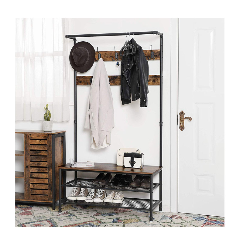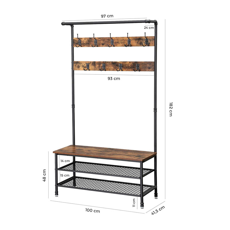Μεταλλικό Έπιπλο Εισόδου με 3 Ράφια και 9 Διπλές Κρεμάστρες 100 x 182 x 41.5 cm VASAGLE HSR47BX