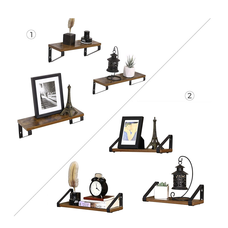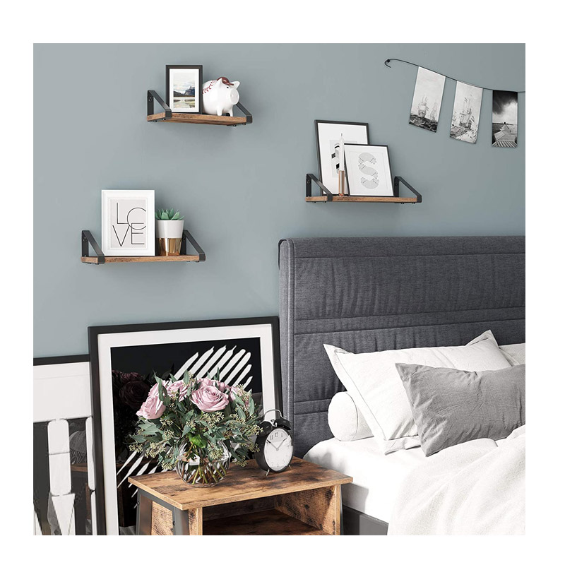 Τα επιτοίχια ράφια, από την εταιρία VASAGLE, διαθέτουν ανθεκτικά στηρίγματα από μέταλλο και επιφάνεια από ξύλο μοριοσανίδας σε καφέ απόχρωση. Τα 3 ράφια έχουν διαφορετικές διαστάσεις, μικρό / μεσαίο / μεγάλο και κάθε ράφι μπορεί να φορτωθεί έως και 5 κιλά. Τα μεταλλικά στηρίγματα μπορούν να τοποθετηθούν με 2 τρόπους, κάτω από την επιφάνεια ή στα πλαϊνά, ανάλογα με την προτίμηση σας. Χάρη στον απλό σχεδιασμό τους ταιριάζουν σε κάθε δωμάτιο.