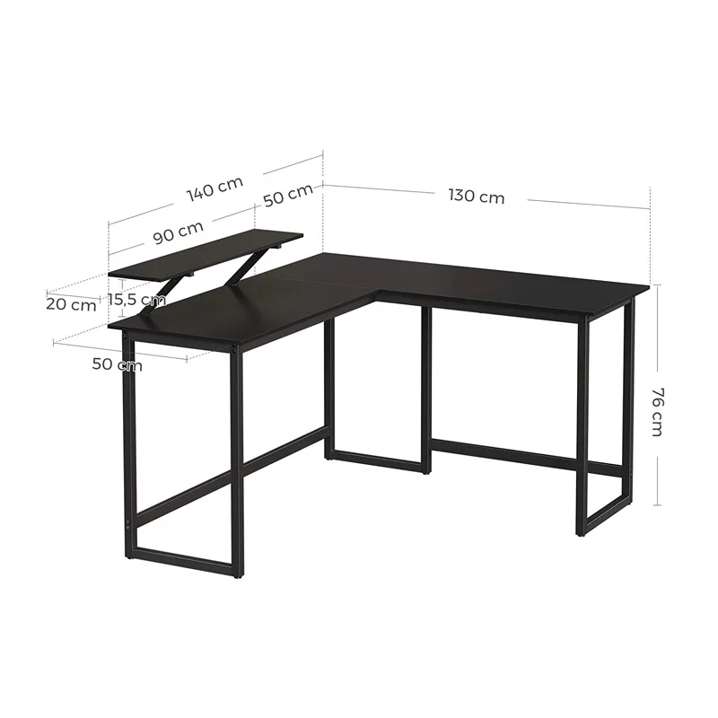 Γωνιακό Μεταλλικό Γραφείο 140 x 130 x 76 / 91.5 cm Χρώματος Μαύρο VASAGLE LWD56BK