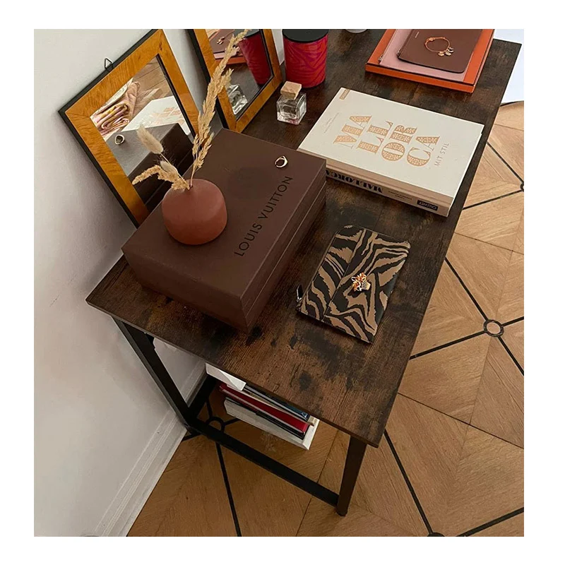 Το γραφείο, από την εταιρία VASAGLE, διαθέτει μεταλλικό σκελετό από ατσάλι και επιφάνεια από μοριοσανίδες σε καφέ απόχρωση. Είναι αρκετά μεγάλο για να χωρέσει έναν υπολογιστή, εκτυπωτή, βιβλία, ακόμη και λίγο χώρο για φυτά σε γλάστρες. Επίσης, έχει άφθονο χώρο για τα πόδια σας, ενώ μπορεί να χωρέσει εύκολα την καρέκλα από κάτω ή και ένα ντουλάπι αρχειοθέτησης.