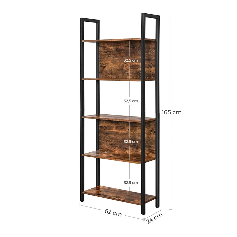 Μεταλλική Βιβλιοθήκη με 5 Ξύλινα Ράφια 62 x 24 x 165 cm VASAGLE LLS025B01V1