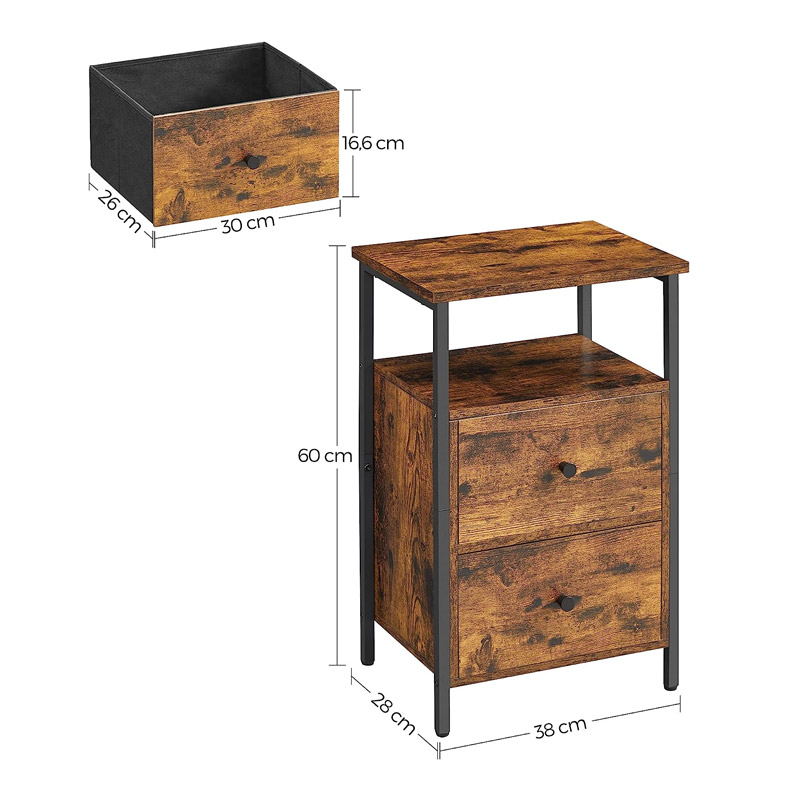 Μεταλλικό – Ξύλινο Κομοδίνο με 2 Συρτάρια και 1 Ράφι 38 x 28 x 60 cm VASAGLE LET521B01