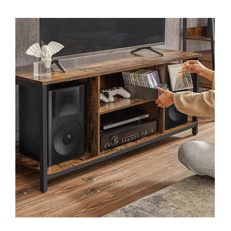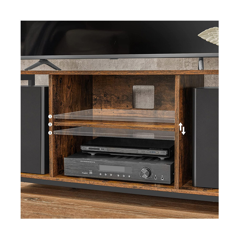 Το έπιπλο τηλεόρασης, από την εταιρία VASAGLE, διαθέτει βιομηχανικό σχεδιασμό, μεταλλικό, ανθεκτικό σκελετό και είναι ιδανικό για την τηλεόραση στο σαλόνι σας. Έχει στο κάτω μέρος 2 ξύλινα πλαϊνά ράφια και 2 ρυθμιζόμενα σε ύψος στη μέση, τα οποία είναι ιδανικά για τη τοποθέτηση κονσολών, τηλεχειριστηρίων, βιβλίων κλπ. και μεγάλη άνω ξύλινη επιφάνεια για την τηλεόραση. Οι ξύλινες επιφάνειες είναι κατασκευασμένες από υψηλής ποιότητας μοριοσανίδα για εύκολο καθάρισμα.