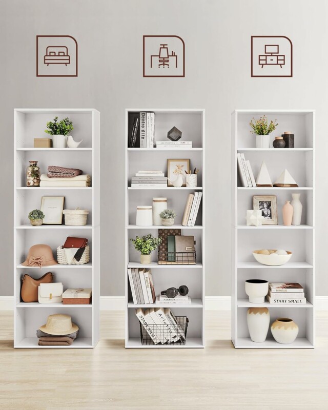 VASAGLE Λευκή Σκανδιναβική Βιβλιοθήκη με Ρυθμιζόμενα Ράφια 60x24x179 εκ. LBC169T14