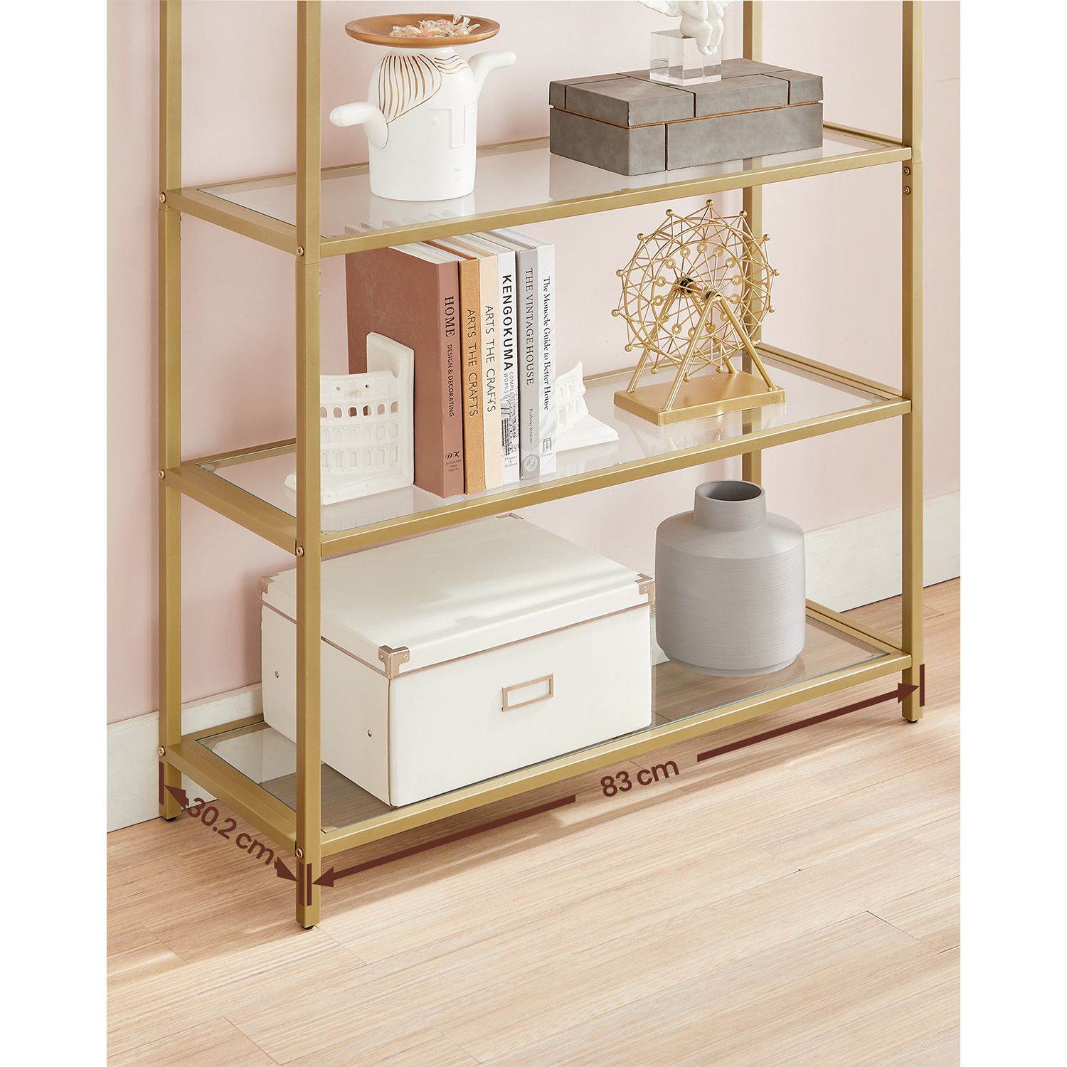 Μεταλλική Καμπυλωτή Ραφιέρα 5 Επιπέδων με Γυαλίνα Ράφια 83 x 30.2 x 183.5 cm Χρυσό LGT050A01 VASAGLE