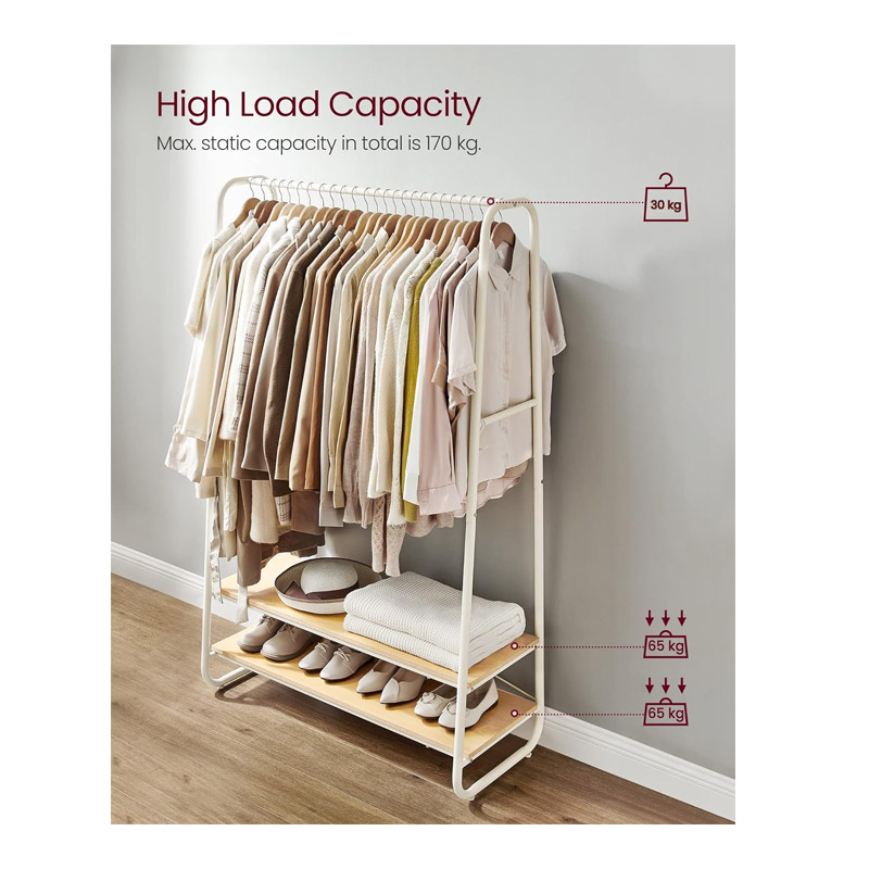 Μεταλλική Κρεμάστρα Ρούχων Δαπέδου με 2 Ξύλινα Ράφια 100 x 45 x 160 cm Χρώματος Λευκό VASAGLE RGR112W09