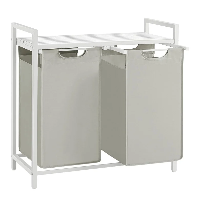 Μεταλλικό Καλάθι Απλύτων με 2 Χώρους και 1 Ράφι 73 x 33 x 72 cm Χρώματος Λευκό VASAGLE BLH201W01