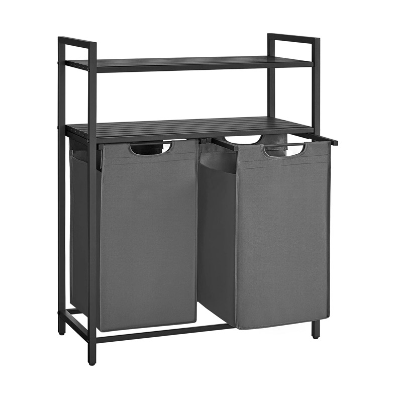 Μεταλλικό Καλάθι Απλύτων με 2 Χώρους και 2 Ράφια 73 x 33 x 92 cm Χρώματος Γκρι VASAGLE BLH211G01